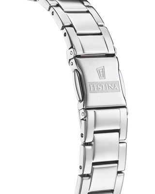 Предлагаем купить наручные часы Festina F20582/3 в г. Москва. Это женские часы из коллекции Mademoiselle. Водозащита до 50 метров позволит принимать душ или умываться, не снимая часов. Надежное минеральное стекло защищает часы от царапин и долго сохраняет первоначальный внешний вид. Минеральное стекло более устойчиво к появлению небольших царапин и потертостей, хорошо может выдержать небольшие удары и падения. Даже если поцарапаете стекло, его легко можно отполировать в часовой мастерской и вернуть им прежний вид. Корпус часов изготовлен из стали, механизм — кварц. Кварцевые часы всегда точнее механических. В среднем, погрешность хода составляет 20 секунд в месяц. Кварцевые часы не нужно заводить, только менять батарейку раз в несколько лет.
