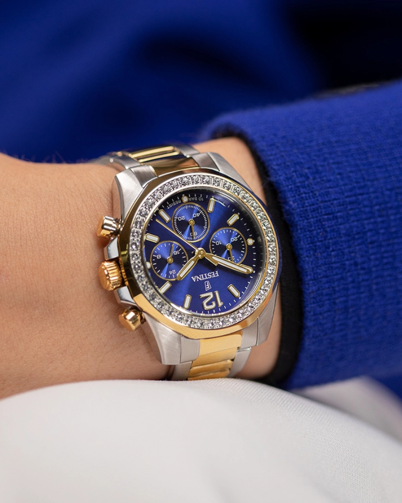 Предлагаем купить наручные часы Festina F20607/2 в г. Москва. Это классические женские часы из коллекции Boyfriend. Водозащита до 100 метров позволит плавать, нырять и заниматься другими водными видами спорта, не беспокоясь о сохранности механизма. Надежное минеральное стекло защищает часы от царапин и долго сохраняет первоначальный внешний вид. Минеральное стекло более устойчиво к появлению небольших царапин и потертостей, хорошо может выдержать небольшие удары и падения. Даже если поцарапаете стекло, его легко можно отполировать в часовой мастерской и вернуть им прежний вид. Корпус часов изготовлен из стали, механизм — кварц. Кварцевые часы всегда точнее механических. В среднем, погрешность хода составляет 20 секунд в месяц. Кварцевые часы не нужно заводить, только менять батарейку раз в несколько лет.
