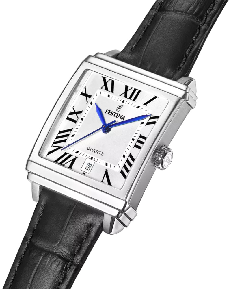 Предлагаем купить наручные часы Festina F20682/3 в г. Москва. Это классические мужские часы из коллекции On the Square. Водозащита до 50 метров позволит принимать душ или умываться, не снимая часов. Надежное минеральное стекло защищает часы от царапин и долго сохраняет первоначальный внешний вид. Минеральное стекло более устойчиво к появлению небольших царапин и потертостей, хорошо может выдержать небольшие удары и падения. Даже если поцарапаете стекло, его легко можно отполировать в часовой мастерской и вернуть им прежний вид. Корпус часов изготовлен из стали, механизм — кварц. Кварцевые часы всегда точнее механических. В среднем, погрешность хода составляет 20 секунд в месяц. Кварцевые часы не нужно заводить, только менять батарейку раз в несколько лет.