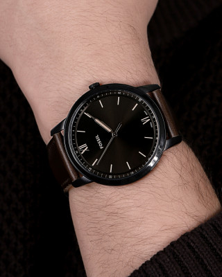 Предлагаем купить наручные часы Fossil FS5551 в г. Москва. Это мужские часы из коллекции The Minimalist. Водозащита до 50 метров позволит принимать душ или умываться, не снимая часов. Надежное минеральное стекло защищает часы от царапин и долго сохраняет первоначальный внешний вид. Минеральное стекло более устойчиво к появлению небольших царапин и потертостей, хорошо может выдержать небольшие удары и падения. Даже если поцарапаете стекло, его легко можно отполировать в часовой мастерской и вернуть им прежний вид. Корпус часов изготовлен из стали, механизм — кварц. Кварцевые часы всегда точнее механических. В среднем, погрешность хода составляет 20 секунд в месяц. Кварцевые часы не нужно заводить, только менять батарейку раз в несколько лет.