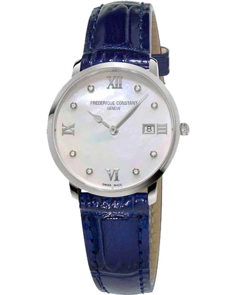 Предлагаем купить наручные часы Frederique Constant FC-220MPWD3S6 в г. Москва. Это классические женские часы из коллекции Slimline. Водозащита до 30 метров позволит защитить корпус от случайных брызг или капель дождя. Надежное сапфировое стекло противостоит появлению царапин. Сапфировое стекло используется в дорогостоящих изделиях, это лучшее стекло для наручных часов, которое не царапается при механическом воздействии, его можно повредить только алмазом. Корпус часов изготовлен из стали, механизм — кварц. Кварцевые часы всегда точнее механических. В среднем, погрешность хода составляет 20 секунд в месяц. Кварцевые часы не нужно заводить, только менять батарейку раз в несколько лет.