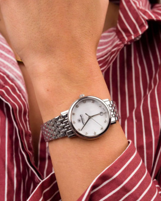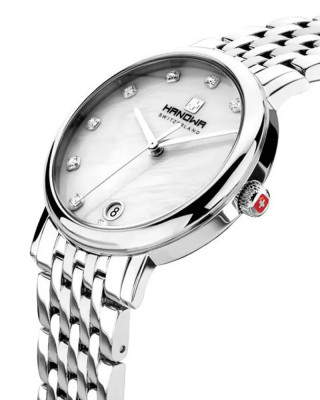 Предлагаем купить наручные часы Hanowa HAWLH0001202 в г. Москва. Это классические женские часы из коллекции Brevine. Водозащита до 50 метров позволит принимать душ или умываться, не снимая часов. Надежное минеральное стекло защищает часы от царапин и долго сохраняет первоначальный внешний вид. Минеральное стекло более устойчиво к появлению небольших царапин и потертостей, хорошо может выдержать небольшие удары и падения. Даже если поцарапаете стекло, его легко можно отполировать в часовой мастерской и вернуть им прежний вид. Корпус часов изготовлен из стали, механизм — кварц. Кварцевые часы всегда точнее механических. В среднем, погрешность хода составляет 20 секунд в месяц. Кварцевые часы не нужно заводить, только менять батарейку раз в несколько лет.
