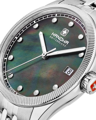 Предлагаем купить наручные часы Hanowa HAWLH0002201 в г. Москва. Это классические женские часы из коллекции Solar. Водозащита до 50 метров позволит принимать душ или умываться, не снимая часов. Надежное минеральное стекло защищает часы от царапин и долго сохраняет первоначальный внешний вид. Минеральное стекло более устойчиво к появлению небольших царапин и потертостей, хорошо может выдержать небольшие удары и падения. Даже если поцарапаете стекло, его легко можно отполировать в часовой мастерской и вернуть им прежний вид. Корпус часов изготовлен из стали, механизм — кварц. Кварцевые часы всегда точнее механических. В среднем, погрешность хода составляет 20 секунд в месяц. Кварцевые часы не нужно заводить, только менять батарейку раз в несколько лет.
