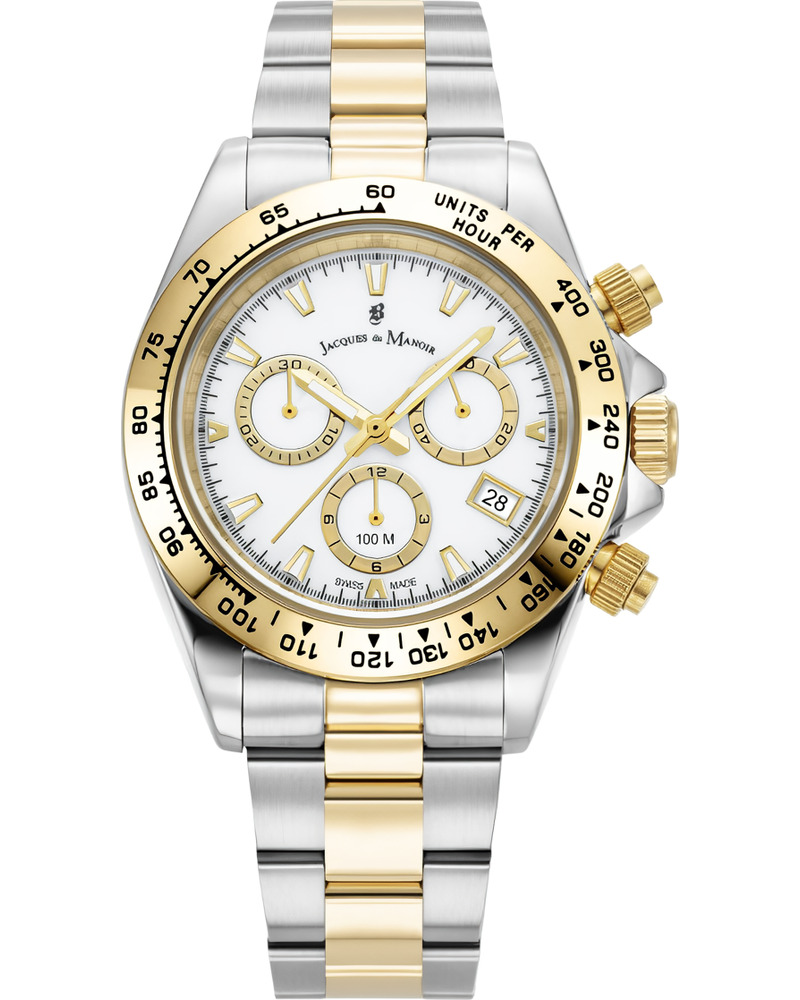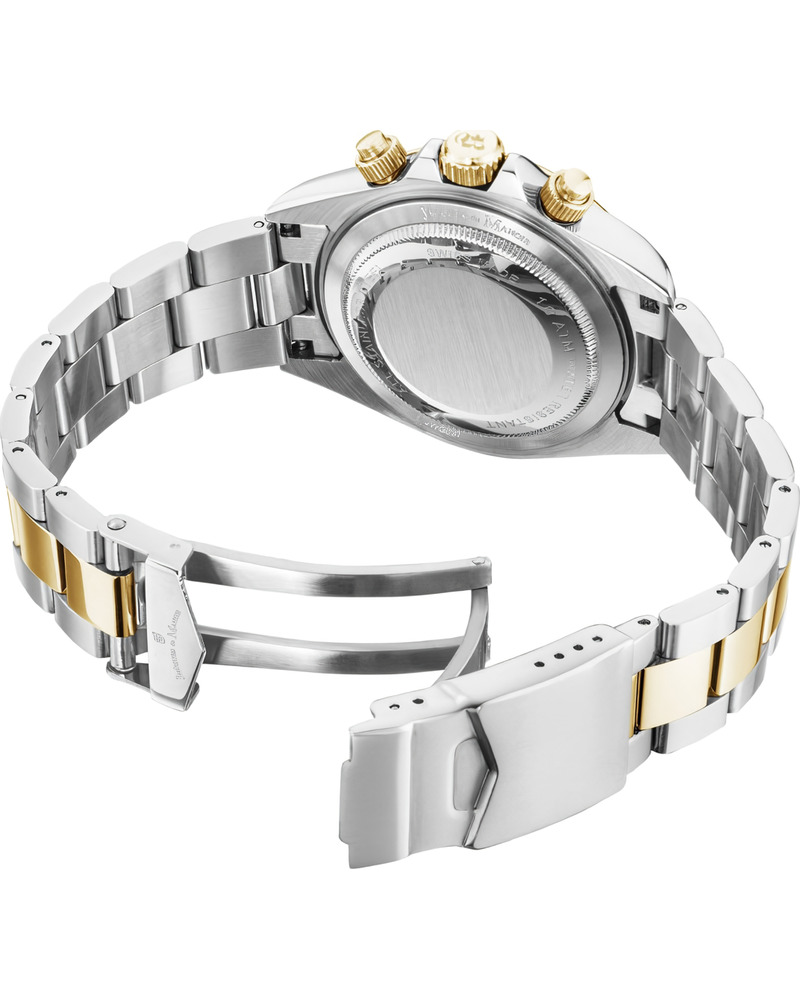 Предлагаем купить наручные часы Jacques du Manoir JWG03703 в г. Москва. Это мужские часы из коллекции Phoenix Chrono. Водозащита до 100 метров позволит плавать, нырять и заниматься другими водными видами спорта, не беспокоясь о сохранности механизма. Надежное минеральное стекло защищает часы от царапин и долго сохраняет первоначальный внешний вид. Минеральное стекло более устойчиво к появлению небольших царапин и потертостей, хорошо может выдержать небольшие удары и падения. Даже если поцарапаете стекло, его легко можно отполировать в часовой мастерской и вернуть им прежний вид. Корпус часов изготовлен из стали, механизм — кварц. Кварцевые часы всегда точнее механических. В среднем, погрешность хода составляет 20 секунд в месяц. Кварцевые часы не нужно заводить, только менять батарейку раз в несколько лет.