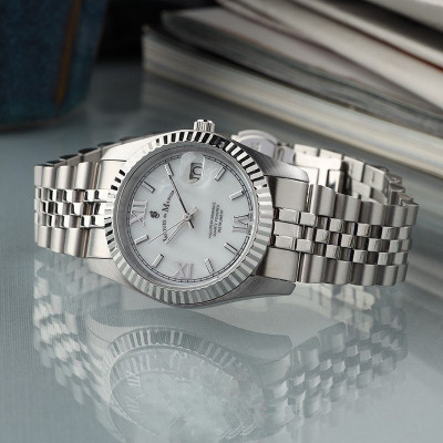 Предлагаем купить наручные часы Jacques du Manoir JWL01301 в г. Москва. Это классические женские часы из коллекции Inspiration. Водозащита до 50 метров позволит принимать душ или умываться, не снимая часов. Надежное минеральное стекло защищает часы от царапин и долго сохраняет первоначальный внешний вид. Минеральное стекло более устойчиво к появлению небольших царапин и потертостей, хорошо может выдержать небольшие удары и падения. Даже если поцарапаете стекло, его легко можно отполировать в часовой мастерской и вернуть им прежний вид. Корпус часов изготовлен из стали, механизм — кварц. Кварцевые часы всегда точнее механических. В среднем, погрешность хода составляет 20 секунд в месяц. Кварцевые часы не нужно заводить, только менять батарейку раз в несколько лет.