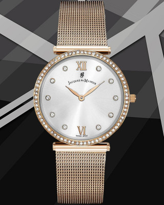 Предлагаем купить наручные часы Jacques du Manoir SORMI.09 в г. Кемерово. Это классические женские часы из коллекции Cocktail. Водозащита до 30 метров позволит защитить корпус от случайных брызг или капель дождя. Надежное минеральное стекло защищает часы от царапин и долго сохраняет первоначальный внешний вид. Минеральное стекло более устойчиво к появлению небольших царапин и потертостей, хорошо может выдержать небольшие удары и падения. Даже если поцарапаете стекло, его легко можно отполировать в часовой мастерской и вернуть им прежний вид. Корпус часов изготовлен из стали, механизм — кварц. Кварцевые часы всегда точнее механических. В среднем, погрешность хода составляет 20 секунд в месяц. Кварцевые часы не нужно заводить, только менять батарейку раз в несколько лет.