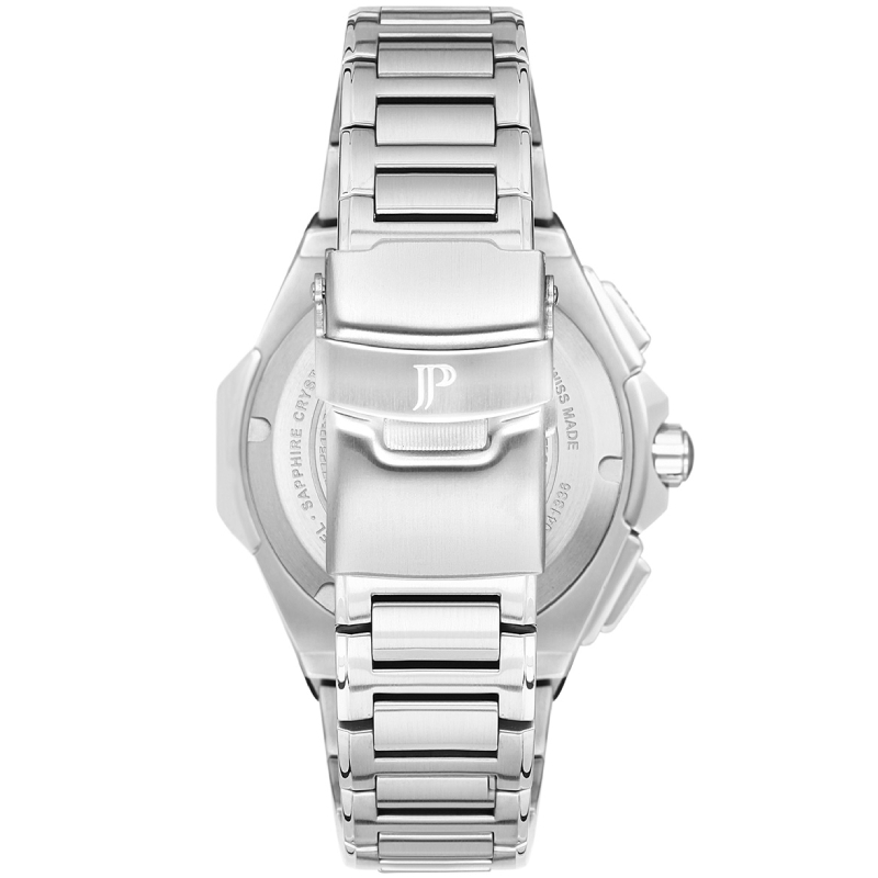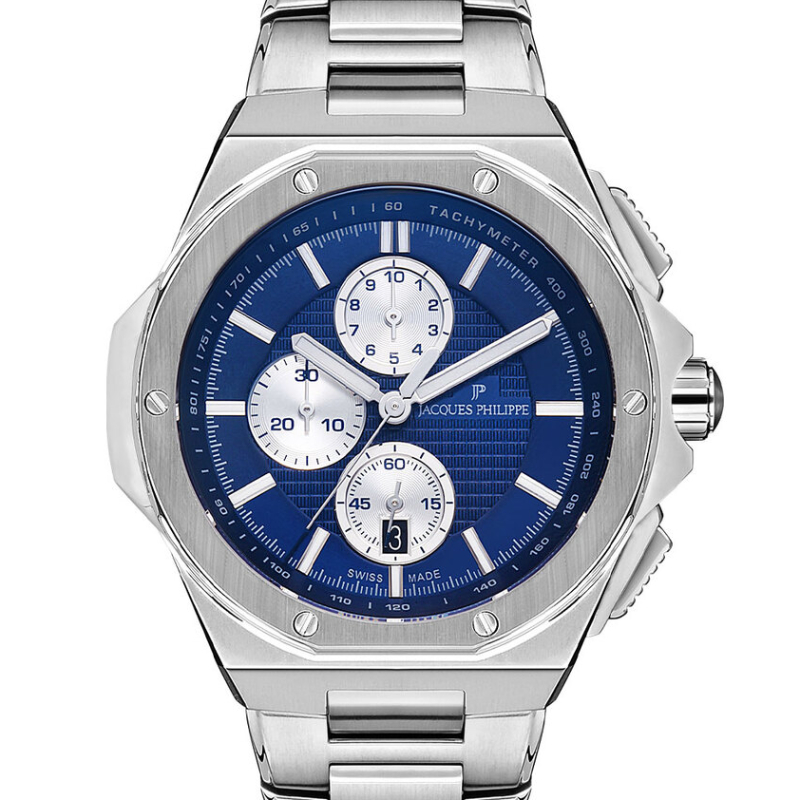Предлагаем купить наручные часы Jacques Philippe JPQGC041336S в г. Москва. Это мужские часы из коллекции Esquire. Водозащита до 50 метров позволит принимать душ или умываться, не снимая часов. Надежное сапфировое стекло противостоит появлению царапин. Сапфировое стекло используется в дорогостоящих изделиях, это лучшее стекло для наручных часов, которое не царапается при механическом воздействии, его можно повредить только алмазом. Корпус часов изготовлен из стали, механизм — кварц. Кварцевые часы всегда точнее механических. В среднем, погрешность хода составляет 20 секунд в месяц. Кварцевые часы не нужно заводить, только менять батарейку раз в несколько лет.