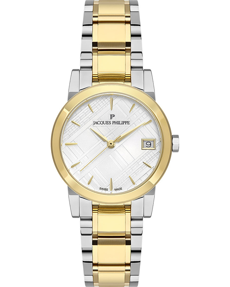 Предлагаем купить наручные часы Jacques Philippe JPQLS311326 в г. Москва. Это женские часы из коллекции Cosmos. Водозащита до 50 метров позволит принимать душ или умываться, не снимая часов. Надежное сапфировое стекло противостоит появлению царапин. Сапфировое стекло используется в дорогостоящих изделиях, это лучшее стекло для наручных часов, которое не царапается при механическом воздействии, его можно повредить только алмазом. Корпус часов изготовлен из стали, механизм — кварц. Кварцевые часы всегда точнее механических. В среднем, погрешность хода составляет 20 секунд в месяц. Кварцевые часы не нужно заводить, только менять батарейку раз в несколько лет.
