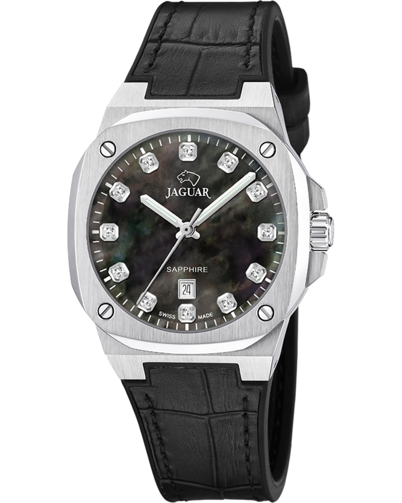 Предлагаем купить наручные часы Jaguar J1032/8 в г. Москва. Это женские часы из коллекции Rond Carre. Водозащита до 100 метров позволит плавать, нырять и заниматься другими водными видами спорта, не беспокоясь о сохранности механизма. Надежное сапфировое стекло противостоит появлению царапин. Сапфировое стекло используется в дорогостоящих изделиях, это лучшее стекло для наручных часов, которое не царапается при механическом воздействии, его можно повредить только алмазом. Корпус часов изготовлен из стали, механизм — кварц. Кварцевые часы всегда точнее механических. В среднем, погрешность хода составляет 20 секунд в месяц. Кварцевые часы не нужно заводить, только менять батарейку раз в несколько лет.