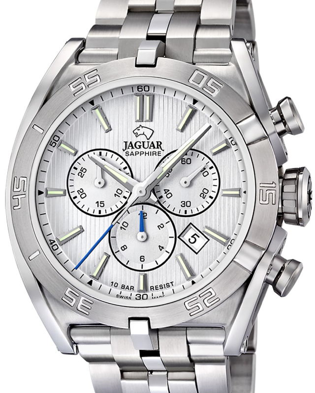 Предлагаем купить наручные часы Jaguar J852/A в г. Москва. Это классические мужские часы из коллекции Executive. Водозащита до 100 метров позволит плавать, нырять и заниматься другими водными видами спорта, не беспокоясь о сохранности механизма. Надежное сапфировое стекло противостоит появлению царапин. Сапфировое стекло используется в дорогостоящих изделиях, это лучшее стекло для наручных часов, которое не царапается при механическом воздействии, его можно повредить только алмазом. Корпус часов изготовлен из стали, механизм — кварц. Кварцевые часы всегда точнее механических. В среднем, погрешность хода составляет 20 секунд в месяц. Кварцевые часы не нужно заводить, только менять батарейку раз в несколько лет.