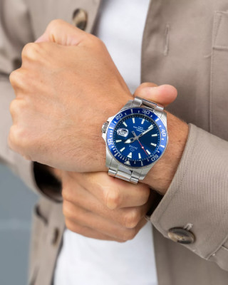 Предлагаем купить наручные часы Jaguar J860/5 в г. Москва. Это мужские часы из коллекции Executive Diver. Водозащита до 200 метров позволит плавать, нырять и погружаться под воду с аквалангом. Надежное сапфировое стекло противостоит появлению царапин. Сапфировое стекло используется в дорогостоящих изделиях, это лучшее стекло для наручных часов, которое не царапается при механическом воздействии, его можно повредить только алмазом. Корпус часов изготовлен из стали, механизм — кварц. Кварцевые часы всегда точнее механических. В среднем, погрешность хода составляет 20 секунд в месяц. Кварцевые часы не нужно заводить, только менять батарейку раз в несколько лет.