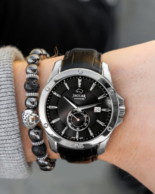 Предлагаем купить наручные часы Jaguar J878/4 в г. Кемерово. Это мужские часы из коллекции Acamar. Водозащита до 100 метров позволит плавать, нырять и заниматься другими водными видами спорта, не беспокоясь о сохранности механизма. Надежное сапфировое стекло противостоит появлению царапин. Сапфировое стекло используется в дорогостоящих изделиях, это лучшее стекло для наручных часов, которое не царапается при механическом воздействии, его можно повредить только алмазом. Корпус часов изготовлен из стали, механизм — кварц. Кварцевые часы всегда точнее механических. В среднем, погрешность хода составляет 20 секунд в месяц. Кварцевые часы не нужно заводить, только менять батарейку раз в несколько лет.