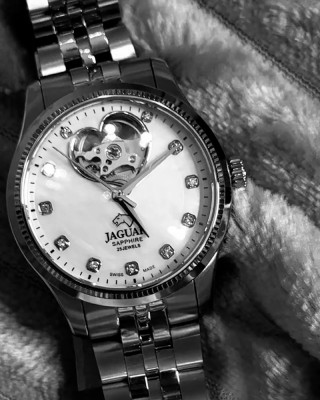 Предлагаем купить наручные часы Jaguar J994/1 в г. Москва. Это классические женские часы из коллекции Automatic Open Heart. Водозащита до 50 метров позволит принимать душ или умываться, не снимая часов. Надежное сапфировое стекло противостоит появлению царапин. Сапфировое стекло используется в дорогостоящих изделиях, это лучшее стекло для наручных часов, которое не царапается при механическом воздействии, его можно повредить только алмазом. Корпус часов изготовлен из стали, механизм — автоподзавод. В часах с автоподзаводом заводная головка практически не используется, что исключает истирание ее материала и материала корпуса (зазор между ними остается постоянным – это препятствует попаданию внутрь влаги, пыли, грязи).