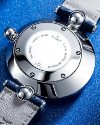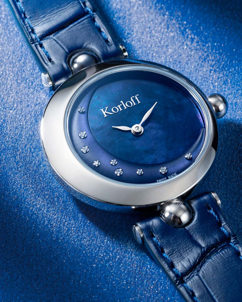 Синий перламутровый циферблат украшен 9 бриллиантами 0,04 ct