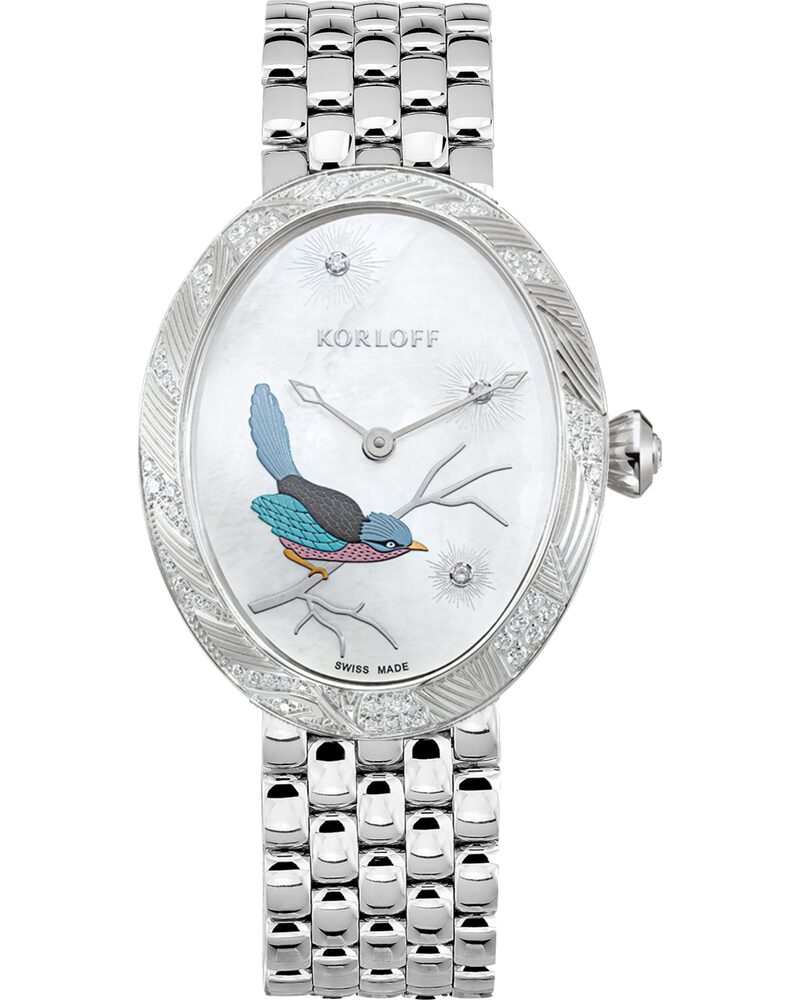 Предлагаем купить наручные часы Korloff 04WA1690109 в г. Москва. Это женские часы из коллекции JDT. Водозащита до 30 метров позволит защитить корпус от случайных брызг или капель дождя. Надежное сапфировое стекло противостоит появлению царапин. Сапфировое стекло используется в дорогостоящих изделиях, это лучшее стекло для наручных часов, которое не царапается при механическом воздействии, его можно повредить только алмазом. Корпус часов изготовлен из стали, механизм — кварц. Кварцевые часы всегда точнее механических. В среднем, погрешность хода составляет 20 секунд в месяц. Кварцевые часы не нужно заводить, только менять батарейку раз в несколько лет.