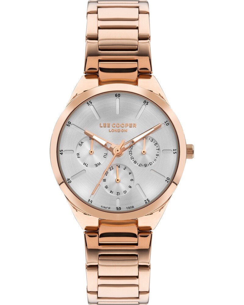 Предлагаем купить наручные часы Lee Cooper LC07811.390 в г. Москва. Это женские часы. Водозащита до 50 метров позволит принимать душ или умываться, не снимая часов. Надежное минеральное стекло защищает часы от царапин и долго сохраняет первоначальный внешний вид. Минеральное стекло более устойчиво к появлению небольших царапин и потертостей, хорошо может выдержать небольшие удары и падения. Даже если поцарапаете стекло, его легко можно отполировать в часовой мастерской и вернуть им прежний вид. Корпус часов изготовлен из стали, механизм — кварц. Кварцевые часы всегда точнее механических. В среднем, погрешность хода составляет 20 секунд в месяц. Кварцевые часы не нужно заводить, только менять батарейку раз в несколько лет.