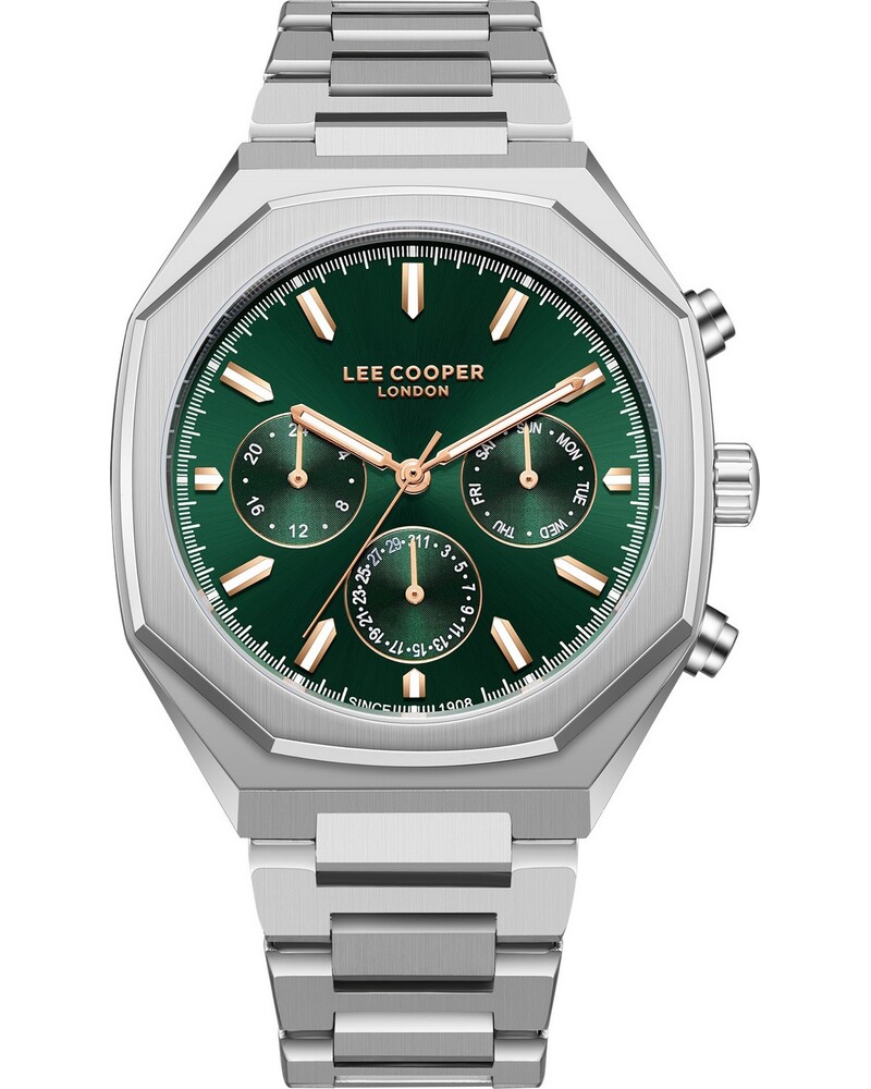 Предлагаем купить наручные часы Lee Cooper LC08045.370 в г. Москва. Это мужские часы. Водозащита до 50 метров позволит принимать душ или умываться, не снимая часов. Надежное минеральное стекло защищает часы от царапин и долго сохраняет первоначальный внешний вид. Минеральное стекло более устойчиво к появлению небольших царапин и потертостей, хорошо может выдержать небольшие удары и падения. Даже если поцарапаете стекло, его легко можно отполировать в часовой мастерской и вернуть им прежний вид. Корпус часов изготовлен из стали, механизм — кварц. Кварцевые часы всегда точнее механических. В среднем, погрешность хода составляет 20 секунд в месяц. Кварцевые часы не нужно заводить, только менять батарейку раз в несколько лет.