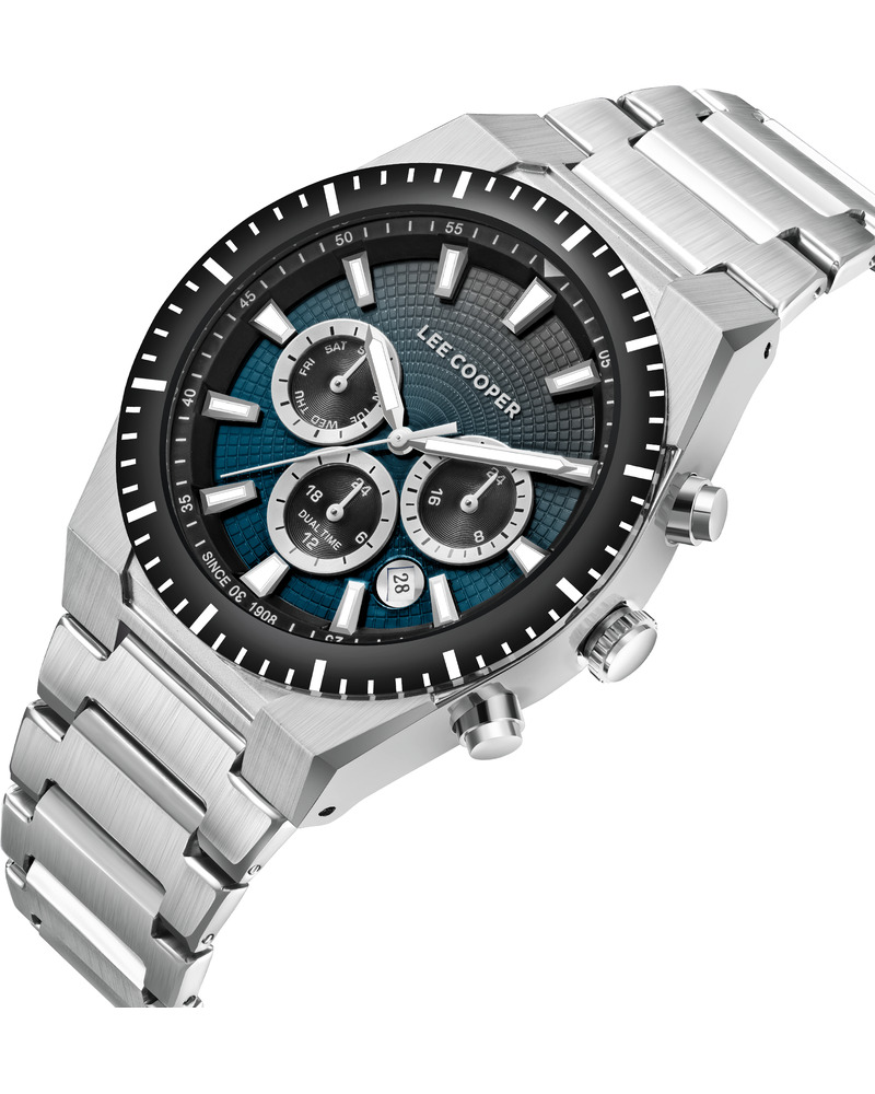 Предлагаем купить наручные часы Lee Cooper LC08100.360 в г. Москва. Это мужские часы. Водозащита до 50 метров позволит принимать душ или умываться, не снимая часов. Надежное минеральное стекло защищает часы от царапин и долго сохраняет первоначальный внешний вид. Минеральное стекло более устойчиво к появлению небольших царапин и потертостей, хорошо может выдержать небольшие удары и падения. Даже если поцарапаете стекло, его легко можно отполировать в часовой мастерской и вернуть им прежний вид. Корпус часов изготовлен из стали, механизм — кварц. Кварцевые часы всегда точнее механических. В среднем, погрешность хода составляет 20 секунд в месяц. Кварцевые часы не нужно заводить, только менять батарейку раз в несколько лет.