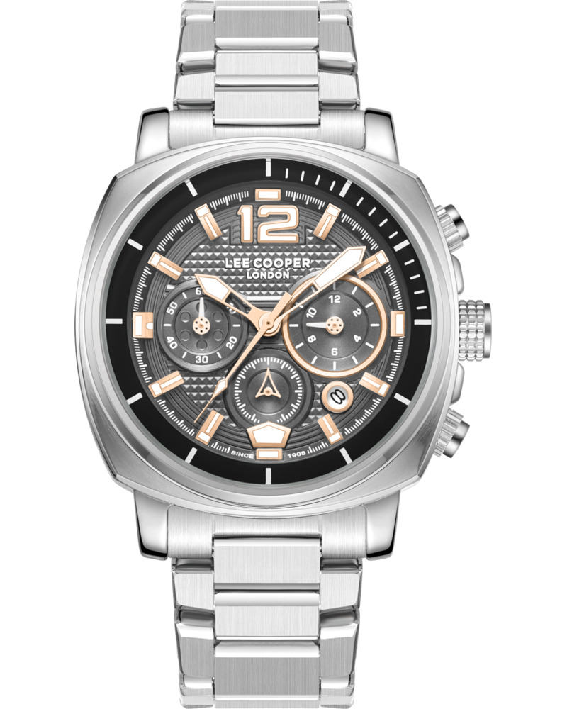 Предлагаем купить наручные часы Lee Cooper LC08194.360 в г. Москва. Это мужские часы. Водозащита до 50 метров позволит принимать душ или умываться, не снимая часов. Надежное минеральное стекло защищает часы от царапин и долго сохраняет первоначальный внешний вид. Минеральное стекло более устойчиво к появлению небольших царапин и потертостей, хорошо может выдержать небольшие удары и падения. Даже если поцарапаете стекло, его легко можно отполировать в часовой мастерской и вернуть им прежний вид. Корпус часов изготовлен из стали, механизм — кварц. Кварцевые часы всегда точнее механических. В среднем, погрешность хода составляет 20 секунд в месяц. Кварцевые часы не нужно заводить, только менять батарейку раз в несколько лет.