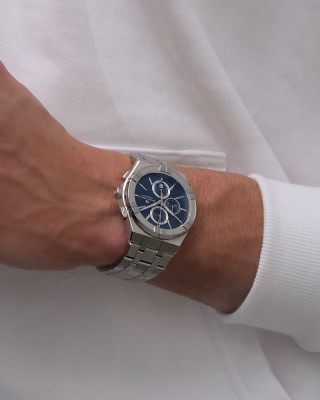 Предлагаем купить наручные часы Maurice Lacroix AI1118-SS002-430-1 в г. Москва. Это классические мужские часы из коллекции Aikon Quartz. Водозащита до 100 метров позволит плавать, нырять и заниматься другими водными видами спорта, не беспокоясь о сохранности механизма. Надежное сапфировое стекло противостоит появлению царапин. Сапфировое стекло используется в дорогостоящих изделиях, это лучшее стекло для наручных часов, которое не царапается при механическом воздействии, его можно повредить только алмазом. Корпус часов изготовлен из стали, механизм — кварц. Кварцевые часы всегда точнее механических. В среднем, погрешность хода составляет 20 секунд в месяц. Кварцевые часы не нужно заводить, только менять батарейку раз в несколько лет.
