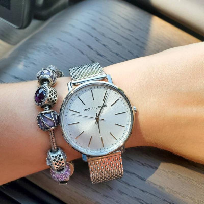 Предлагаем купить наручные часы Michael Kors MK4338 в г. Москва. Это женские часы из коллекции Pyper. Водозащита до 50 метров позволит принимать душ или умываться, не снимая часов. Надежное минеральное стекло защищает часы от царапин и долго сохраняет первоначальный внешний вид. Минеральное стекло более устойчиво к появлению небольших царапин и потертостей, хорошо может выдержать небольшие удары и падения. Даже если поцарапаете стекло, его легко можно отполировать в часовой мастерской и вернуть им прежний вид. Корпус часов изготовлен из стали, механизм — кварц. Кварцевые часы всегда точнее механических. В среднем, погрешность хода составляет 20 секунд в месяц. Кварцевые часы не нужно заводить, только менять батарейку раз в несколько лет.