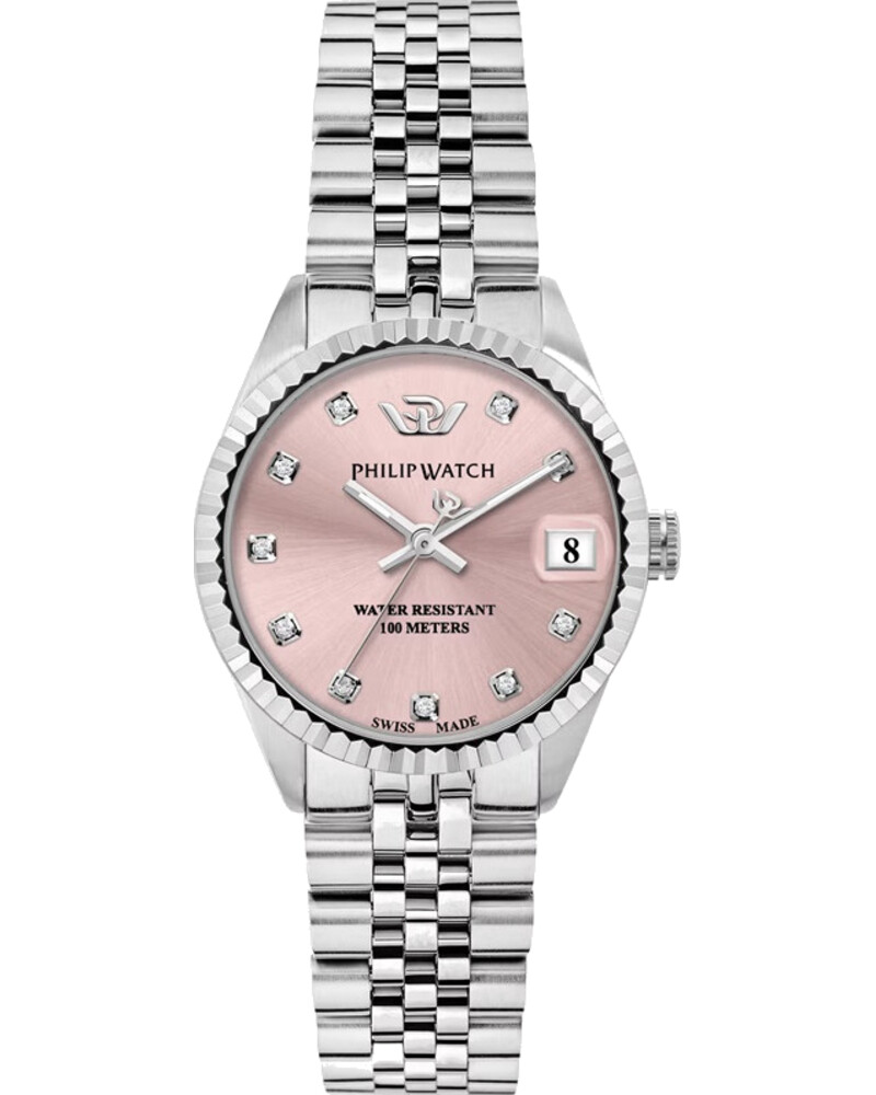 Предлагаем купить наручные часы Philip Watch R8253597621 в г. Москва. Это классические женские часы из коллекции CARIBE. Водозащита до 100 метров позволит плавать, нырять и заниматься другими водными видами спорта, не беспокоясь о сохранности механизма. Надежное сапфировое стекло противостоит появлению царапин. Сапфировое стекло используется в дорогостоящих изделиях, это лучшее стекло для наручных часов, которое не царапается при механическом воздействии, его можно повредить только алмазом. Корпус часов изготовлен из стали, механизм — кварц. Кварцевые часы всегда точнее механических. В среднем, погрешность хода составляет 20 секунд в месяц. Кварцевые часы не нужно заводить, только менять батарейку раз в несколько лет.