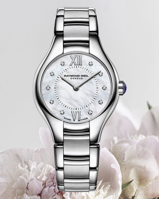Предлагаем купить наручные часы Raymond Weil 5124-ST-00985 в г. Москва. Это классические женские часы из коллекции Noemia. Водозащита до 50 метров позволит принимать душ или умываться, не снимая часов. Надежное сапфировое стекло противостоит появлению царапин. Сапфировое стекло используется в дорогостоящих изделиях, это лучшее стекло для наручных часов, которое не царапается при механическом воздействии, его можно повредить только алмазом. Корпус часов изготовлен из стали, механизм — кварц. Кварцевые часы всегда точнее механических. В среднем, погрешность хода составляет 20 секунд в месяц. Кварцевые часы не нужно заводить, только менять батарейку раз в несколько лет.