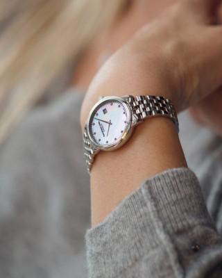 Предлагаем купить наручные часы Raymond Weil 5385-ST-97081 в г. Москва. Это классические женские часы из коллекции Toccata. Водозащита до 50 метров позволит принимать душ или умываться, не снимая часов. Надежное сапфировое стекло противостоит появлению царапин. Сапфировое стекло используется в дорогостоящих изделиях, это лучшее стекло для наручных часов, которое не царапается при механическом воздействии, его можно повредить только алмазом. Корпус часов изготовлен из стали, механизм — кварц. Кварцевые часы всегда точнее механических. В среднем, погрешность хода составляет 20 секунд в месяц. Кварцевые часы не нужно заводить, только менять батарейку раз в несколько лет.