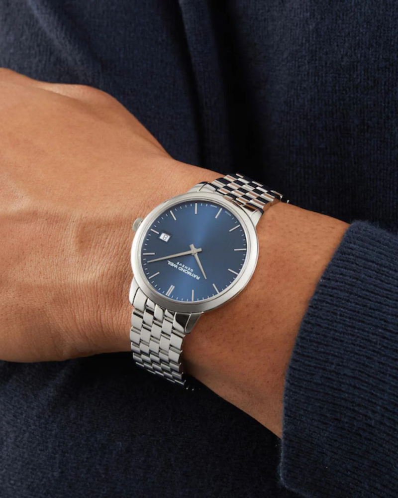 Предлагаем купить наручные часы Raymond Weil 5585-ST-50001 в г. Москва. Это классические мужские часы из коллекции Toccata. Водозащита до 50 метров позволит принимать душ или умываться, не снимая часов. Надежное сапфировое стекло противостоит появлению царапин. Сапфировое стекло используется в дорогостоящих изделиях, это лучшее стекло для наручных часов, которое не царапается при механическом воздействии, его можно повредить только алмазом. Корпус часов изготовлен из стали, механизм — кварц. Кварцевые часы всегда точнее механических. В среднем, погрешность хода составляет 20 секунд в месяц. Кварцевые часы не нужно заводить, только менять батарейку раз в несколько лет.