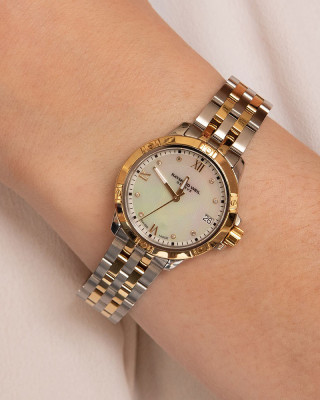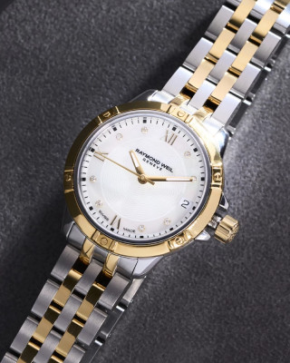 Предлагаем купить наручные часы Raymond Weil 5960-STP-00995 в г. Москва. Это классические женские часы из коллекции Tango. Водозащита до 100 метров позволит плавать, нырять и заниматься другими водными видами спорта, не беспокоясь о сохранности механизма. Надежное сапфировое стекло противостоит появлению царапин. Сапфировое стекло используется в дорогостоящих изделиях, это лучшее стекло для наручных часов, которое не царапается при механическом воздействии, его можно повредить только алмазом. Корпус часов изготовлен из стали, механизм — кварц. Кварцевые часы всегда точнее механических. В среднем, погрешность хода составляет 20 секунд в месяц. Кварцевые часы не нужно заводить, только менять батарейку раз в несколько лет.