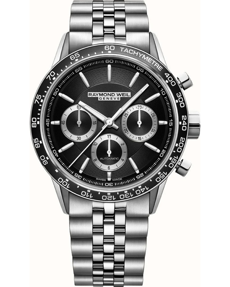 Корпус из нержавеющей стали с черным керамическим тахиметрическим безелем