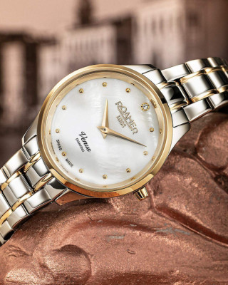 Предлагаем купить наручные часы Roamer 601 857 47 89 20 в г. Москва. Это классические женские часы из коллекции Venus Diamond. Водозащита до 50 метров позволит принимать душ или умываться, не снимая часов. Надежное сапфировое стекло противостоит появлению царапин. Сапфировое стекло используется в дорогостоящих изделиях, это лучшее стекло для наручных часов, которое не царапается при механическом воздействии, его можно повредить только алмазом. Корпус часов изготовлен из стали, механизм — кварц. Кварцевые часы всегда точнее механических. В среднем, погрешность хода составляет 20 секунд в месяц. Кварцевые часы не нужно заводить, только менять батарейку раз в несколько лет.