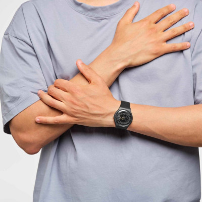Предлагаем купить наручные часы Swatch SYXB105 в г. Москва. Это мужские часы из коллекции Skin Irony. Водозащита до 30 метров позволит защитить корпус от случайных брызг или капель дождя. Надежное минеральное стекло защищает часы от царапин и долго сохраняет первоначальный внешний вид. Минеральное стекло более устойчиво к появлению небольших царапин и потертостей, хорошо может выдержать небольшие удары и падения. Даже если поцарапаете стекло, его легко можно отполировать в часовой мастерской и вернуть им прежний вид. Корпус часов изготовлен из полимера, механизм — кварц. Кварцевые часы всегда точнее механических. В среднем, погрешность хода составляет 20 секунд в месяц. Кварцевые часы не нужно заводить, только менять батарейку раз в несколько лет.