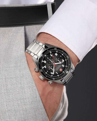 Предлагаем купить наручные часы Swiss Military Hanowa SMWGI0003803 в г. Москва. Это мужские часы из коллекции Greyhound. Водозащита до 100 метров позволит плавать, нырять и заниматься другими водными видами спорта, не беспокоясь о сохранности механизма. Надежное сапфировое стекло противостоит появлению царапин. Сапфировое стекло используется в дорогостоящих изделиях, это лучшее стекло для наручных часов, которое не царапается при механическом воздействии, его можно повредить только алмазом. Корпус часов изготовлен из стали, механизм — кварц. Кварцевые часы всегда точнее механических. В среднем, погрешность хода составляет 20 секунд в месяц. Кварцевые часы не нужно заводить, только менять батарейку раз в несколько лет.