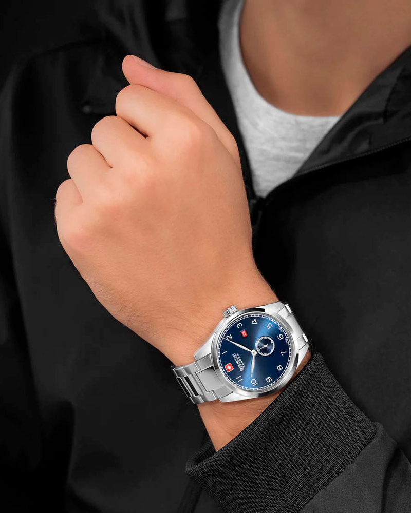 Предлагаем купить наручные часы Swiss Military Hanowa SMWGH0000705 в г. Москва. Это мужские часы из коллекции Lynx. Водозащита до 100 метров позволит плавать, нырять и заниматься другими водными видами спорта, не беспокоясь о сохранности механизма. Надежное сапфировое стекло противостоит появлению царапин. Сапфировое стекло используется в дорогостоящих изделиях, это лучшее стекло для наручных часов, которое не царапается при механическом воздействии, его можно повредить только алмазом. Корпус часов изготовлен из стали, механизм — кварц. Кварцевые часы всегда точнее механических. В среднем, погрешность хода составляет 20 секунд в месяц. Кварцевые часы не нужно заводить, только менять батарейку раз в несколько лет.