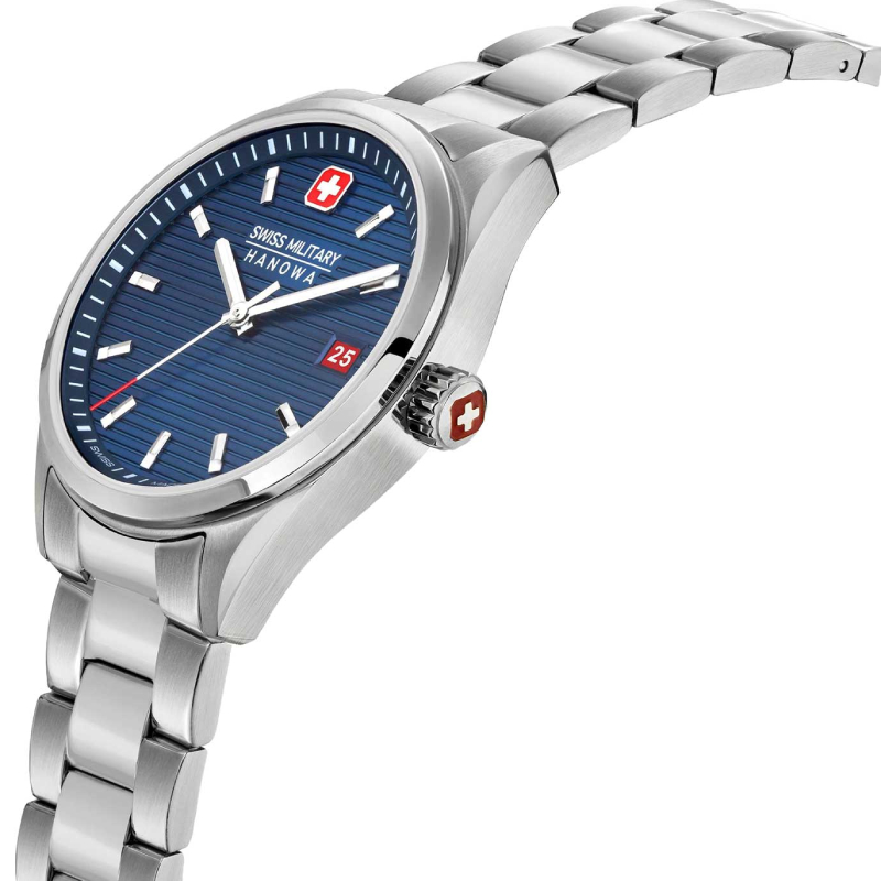 Предлагаем купить наручные часы Swiss Military Hanowa SMWLH2200202 в г. Москва. Это женские часы из коллекции Roadrunner. Водозащита до 100 метров позволит плавать, нырять и заниматься другими водными видами спорта, не беспокоясь о сохранности механизма. Надежное сапфировое стекло противостоит появлению царапин. Сапфировое стекло используется в дорогостоящих изделиях, это лучшее стекло для наручных часов, которое не царапается при механическом воздействии, его можно повредить только алмазом. Корпус часов изготовлен из стали, механизм — кварц. Кварцевые часы всегда точнее механических. В среднем, погрешность хода составляет 20 секунд в месяц. Кварцевые часы не нужно заводить, только менять батарейку раз в несколько лет.