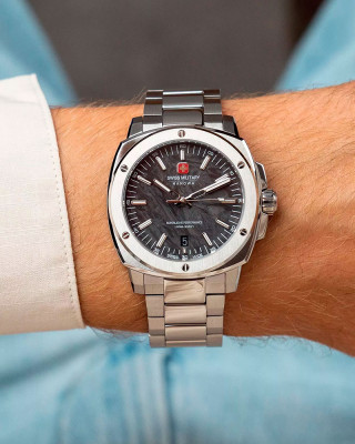 Предлагаем купить наручные часы Swiss Military Hanowa SMWGH0007101 в г. Москва. Это мужские часы. Водозащита до 100 метров позволит плавать, нырять и заниматься другими водными видами спорта, не беспокоясь о сохранности механизма. Надежное сапфировое стекло противостоит появлению царапин. Сапфировое стекло используется в дорогостоящих изделиях, это лучшее стекло для наручных часов, которое не царапается при механическом воздействии, его можно повредить только алмазом. Корпус часов изготовлен из стали, механизм — кварц. Кварцевые часы всегда точнее механических. В среднем, погрешность хода составляет 20 секунд в месяц. Кварцевые часы не нужно заводить, только менять батарейку раз в несколько лет.