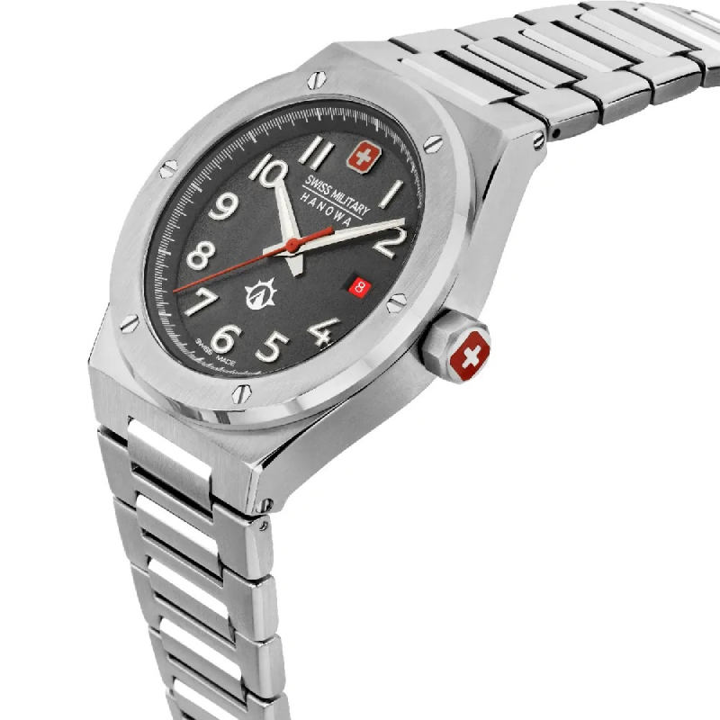 Предлагаем купить наручные часы Swiss Military Hanowa SMWGH2101902 в г. Москва. Это классические мужские часы из коллекции Sonoran. Водозащита до 100 метров позволит плавать, нырять и заниматься другими водными видами спорта, не беспокоясь о сохранности механизма. Надежное сапфировое стекло противостоит появлению царапин. Сапфировое стекло используется в дорогостоящих изделиях, это лучшее стекло для наручных часов, которое не царапается при механическом воздействии, его можно повредить только алмазом. Корпус часов изготовлен из стали, механизм — кварц. Кварцевые часы всегда точнее механических. В среднем, погрешность хода составляет 20 секунд в месяц. Кварцевые часы не нужно заводить, только менять батарейку раз в несколько лет.