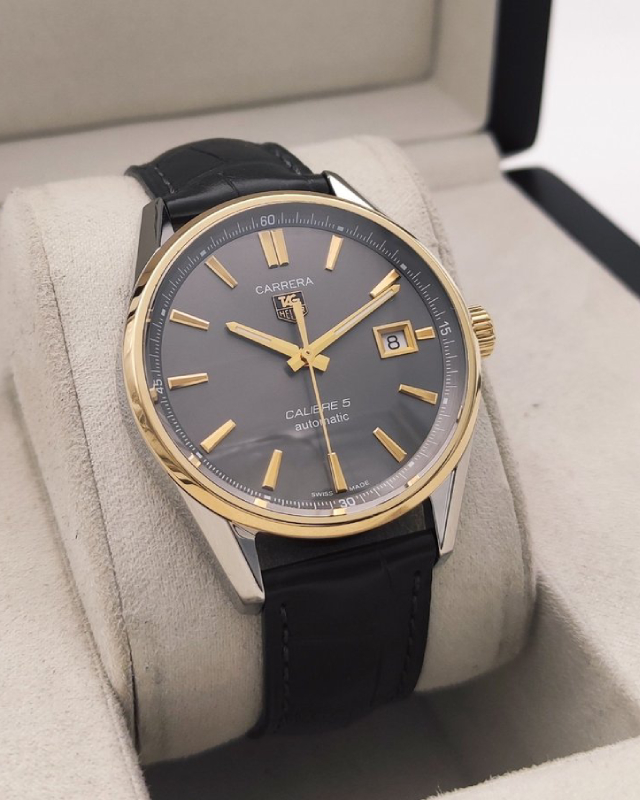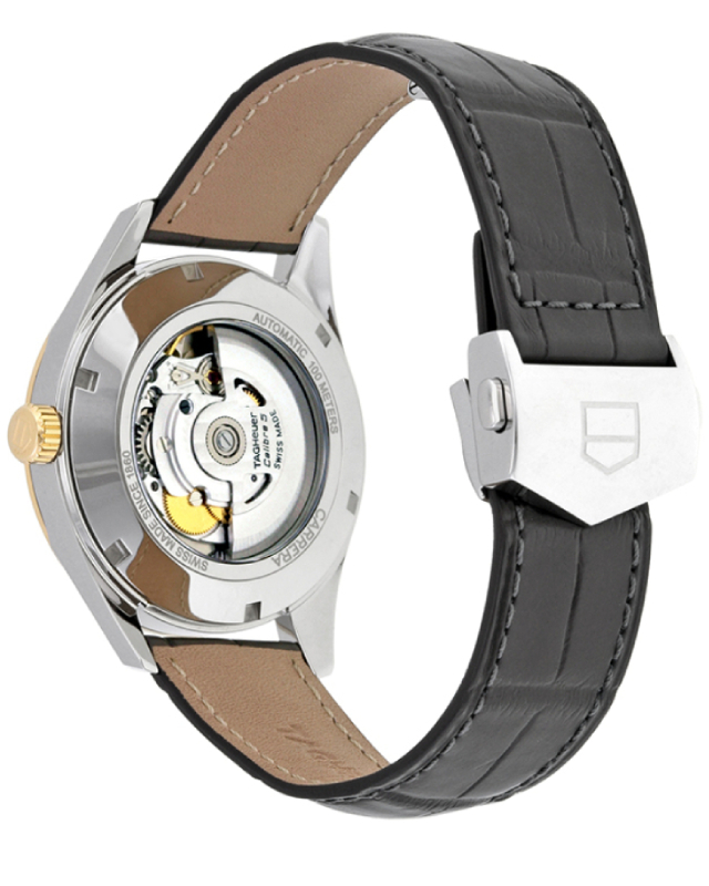 Мужские часы из коллекции TAG HEUER CARRERA вдохновлены знаменитой автомобильной гонкой Carrera Panamericana, снискавшей славу самой опасной в мире. Модель является не только практичным аксессуаром, гарантом качества которого служит отметка «Swiss Made», но и настоящим ювелирным украшением. Золото – один из главных материалов представленных часов: из него сделаны безель и заводная головка. Золотом покрыты и индексы на лаконичном черном циферблате. Материалом для эксклюзивного ремешка послужила кожа аллигатора.