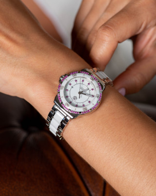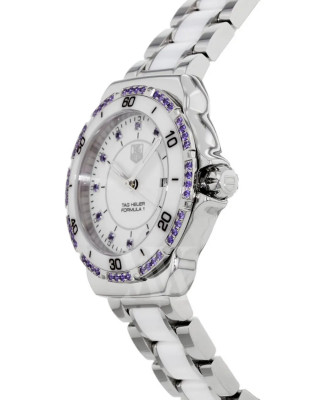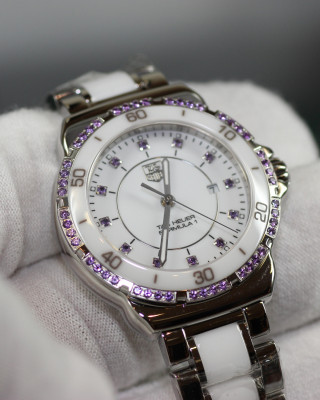Женские часы из коллекции Formula 1, ворвавшись в повседневную рутину, станут вашим изящным помощником, гарантом качества которого служит отметка «Swiss Made». Безель и корпус циферблата инкрустированы сиреневыми кристаллами аметиста. Лаконичное оформление модели позволит вам выбрать ее в качестве аксессуара и для официального костюма, и для вечернего платья. Часы обладают высокой степенью водонепроницаемости, а сапфировое стекло устойчиво к появлению царапин.