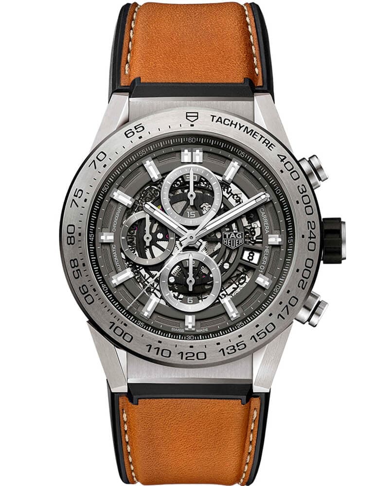 Мужские швейцарские часы из коллекции TAG HEUER CARRERA предназначены для повседневного ношения. Скелетонизированный циферблат диаметром 45 мм. будет эффектно смотреться на запястье в любой ситуации: от бизнес-встречи до ужина в ресторане с друзьями. Хронограф и тахиметр, которыми оснащена данная модель, помогут вам при необходимости провести точные измерения. Швейцарский механизм автоподзавода увеличивает точность хода. Ремешок, материалами которого являются кожа и каучук, не поддается истиранию, ему не страшны пот и воздействие воды.