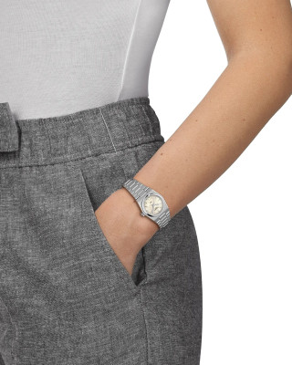 Предлагаем купить наручные часы Tissot T137.010.11.111.00 в г. Москва. Это классические женские часы из коллекции PRX. Водозащита до 100 метров позволит плавать, нырять и заниматься другими водными видами спорта, не беспокоясь о сохранности механизма. Надежное сапфировое стекло противостоит появлению царапин. Сапфировое стекло используется в дорогостоящих изделиях, это лучшее стекло для наручных часов, которое не царапается при механическом воздействии, его можно повредить только алмазом. Корпус часов изготовлен из стали, механизм — кварц. Кварцевые часы всегда точнее механических. В среднем, погрешность хода составляет 20 секунд в месяц. Кварцевые часы не нужно заводить, только менять батарейку раз в несколько лет.