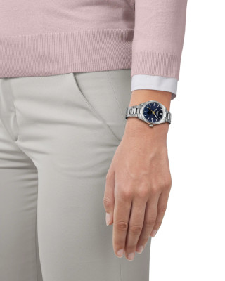 Предлагаем купить наручные часы Tissot T150.210.11.041.01 в г. Москва. Это классические женские часы из коллекции T-Classic. Водозащита до 100 метров позволит плавать, нырять и заниматься другими водными видами спорта, не беспокоясь о сохранности механизма. Надежное сапфировое стекло противостоит появлению царапин. Сапфировое стекло используется в дорогостоящих изделиях, это лучшее стекло для наручных часов, которое не царапается при механическом воздействии, его можно повредить только алмазом. Корпус часов изготовлен из стали, механизм — кварц. Кварцевые часы всегда точнее механических. В среднем, погрешность хода составляет 20 секунд в месяц. Кварцевые часы не нужно заводить, только менять батарейку раз в несколько лет.