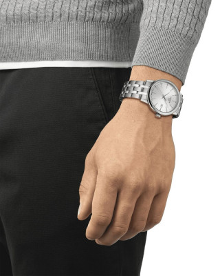 Предлагаем купить наручные часы Tissot T129.410.11.031.00 в г. Москва. Это мужские часы из коллекции T-Classic. Водозащита до 50 метров позволит принимать душ или умываться, не снимая часов. Надежное сапфировое стекло противостоит появлению царапин. Сапфировое стекло используется в дорогостоящих изделиях, это лучшее стекло для наручных часов, которое не царапается при механическом воздействии, его можно повредить только алмазом. Корпус часов изготовлен из стали, механизм — кварц. Кварцевые часы всегда точнее механических. В среднем, погрешность хода составляет 20 секунд в месяц. Кварцевые часы не нужно заводить, только менять батарейку раз в несколько лет.