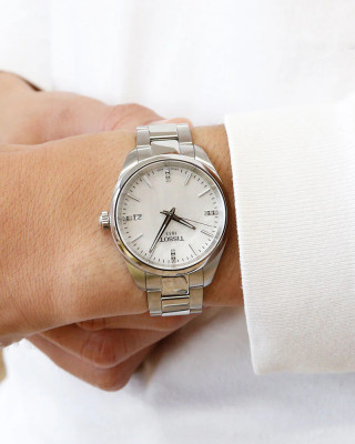 Предлагаем купить наручные часы Tissot T150.210.11.116.00 в г. Москва. Это женские часы из коллекции T-Classic. Водозащита до 100 метров позволит плавать, нырять и заниматься другими водными видами спорта, не беспокоясь о сохранности механизма. Надежное сапфировое стекло противостоит появлению царапин. Сапфировое стекло используется в дорогостоящих изделиях, это лучшее стекло для наручных часов, которое не царапается при механическом воздействии, его можно повредить только алмазом. Корпус часов изготовлен из стали, механизм — кварц. Кварцевые часы всегда точнее механических. В среднем, погрешность хода составляет 20 секунд в месяц. Кварцевые часы не нужно заводить, только менять батарейку раз в несколько лет.