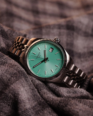 Внутри установлен швейцарский кварцевый механизм ETA F05.115 с функцией EOL (индикация окончания срока службы батареи), гарантирующий высокую точность и минимальное обслуживание.