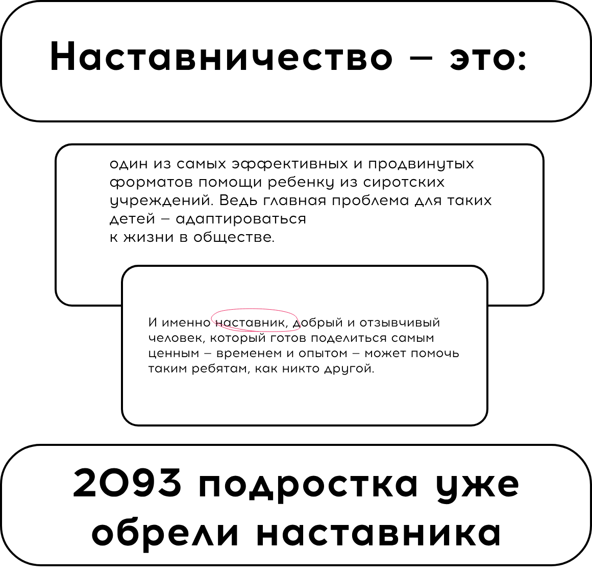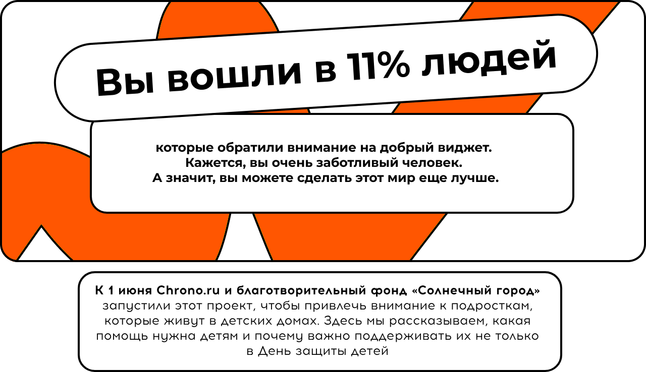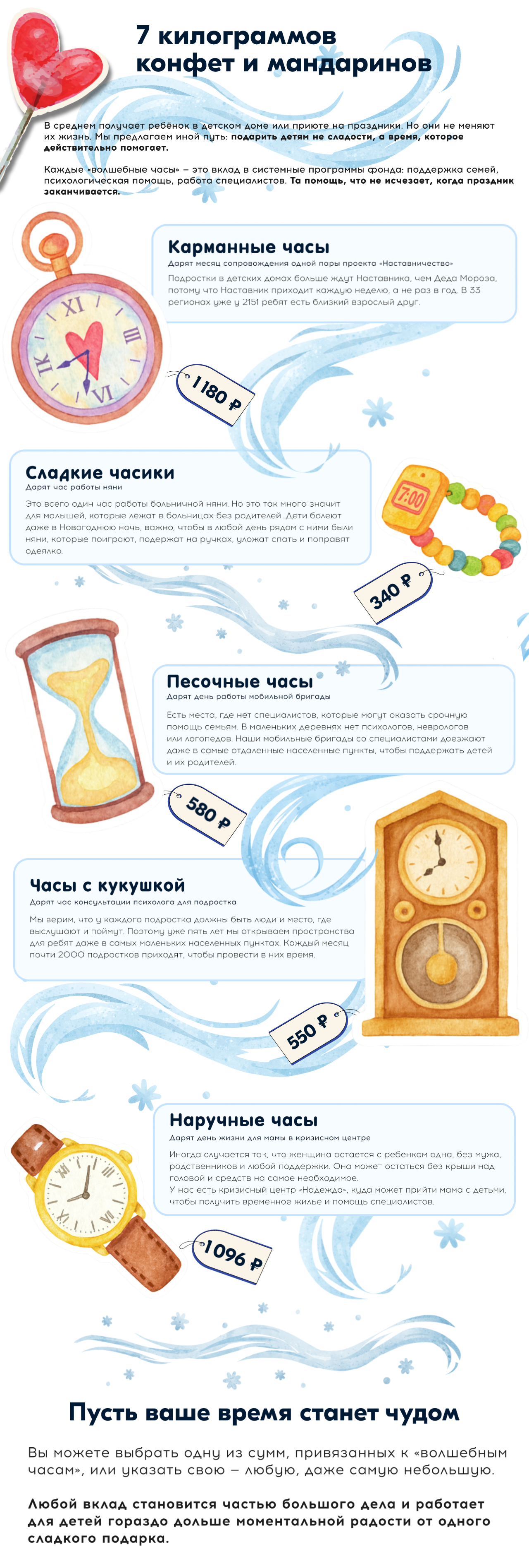 С 2007 года помогаем детям-сиротам и семьям, которые оказались в трудной жизненной ситуации. Работаем в 26 регионах России и Казахстане. Мы создаем систему помогающих специалистов в России, чтобы каждый ребенок получил шанс на счастливое детство и становления себя как полноценной личности.