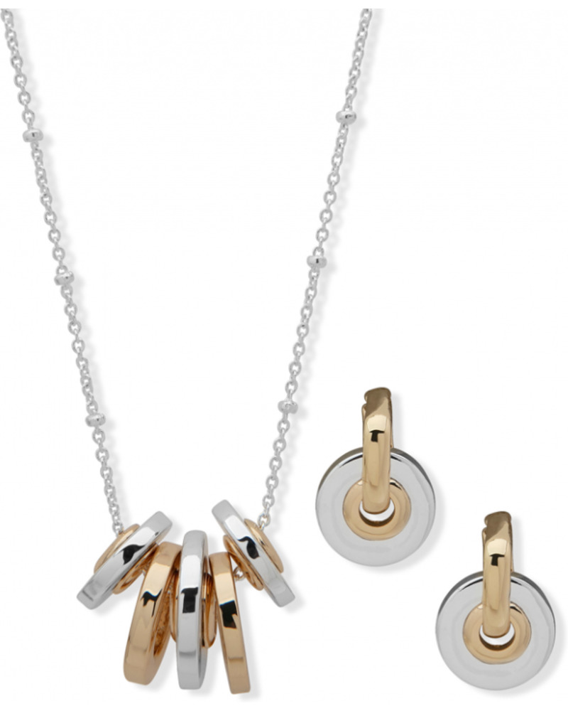 Набор подвеска + серьги из сплава недрагоценных металлов. Вставка: нет. Цвет изделия: желтое золото / стальной. Длина изделия: подвеска: 42+9 см; размер серег: 1,5х1,2 см