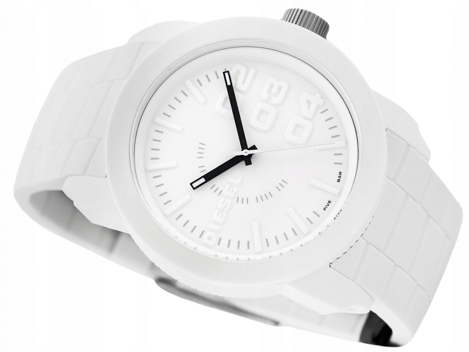Еще одни Diesel, но на этот раз в белом цвете. Модель выполнена также в спортивном стиле, но за счет минималистичного дизайна и нейтрального оттенка выглядит более сдержанно. Как и предыдущая модель Diesel, имеют кварцевый механизм, полимерный корпус и водозащиту 30 метров.