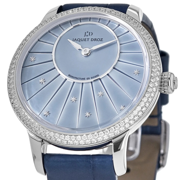 Механизм с автоподзаводом позволяет не беспокоится о регулярном заводе механизма вручную. Jaquet Droz Petite Heure Minute — настоящее произведение искусства, предназначенное для ценителей роскоши и элегантности. И, может быть, идеальный подарок на Новый год? Такой подарок точно запомнится!